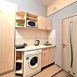 L'appartamento offre opzioni di self-cateering come una cucina completamente attrezzata dotata di un bollitore elettrico, un frigo e utensili da cucina. Gli ospiti possono gustare pasti americani presso il ristorante Frans.ua, che si trova a 250 metri. La stazione degli autobus più vicina, Mytna sqr, è a circa 200 metri.